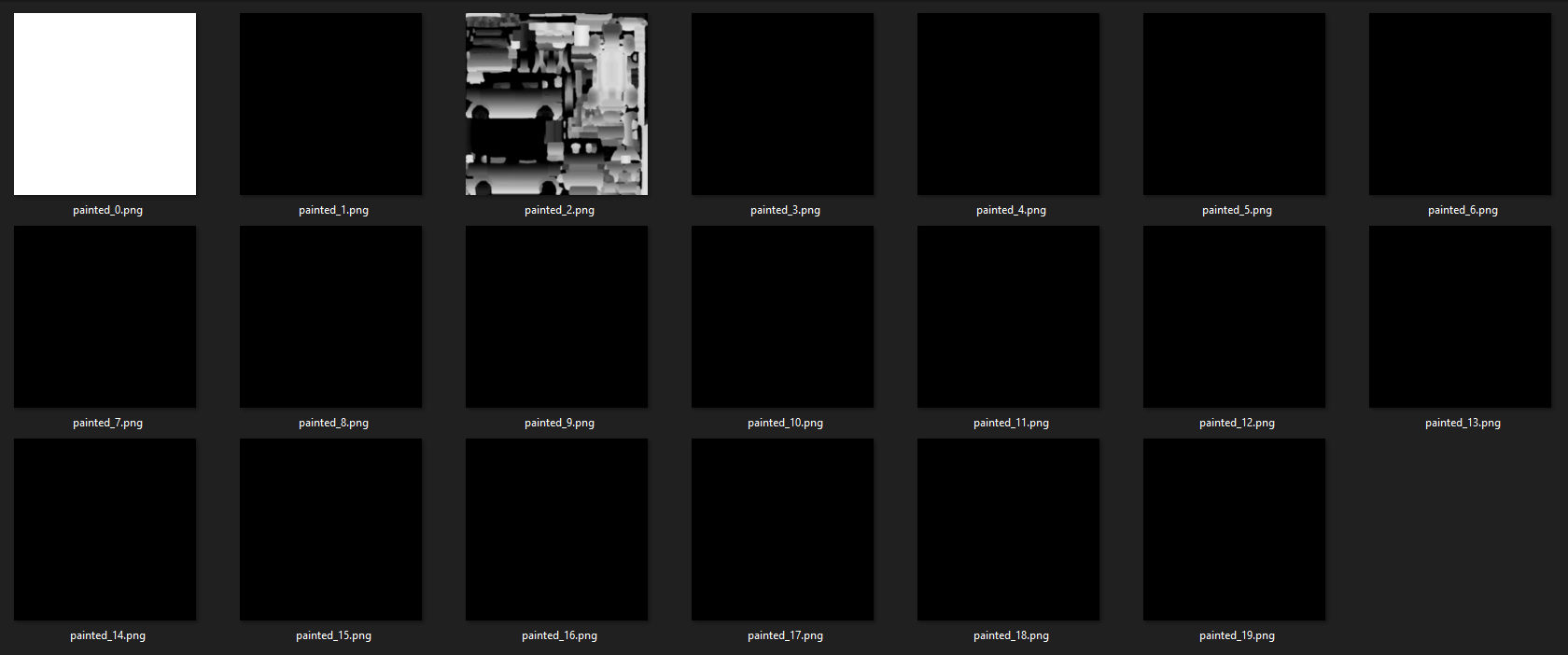 We know that the layer 0 is responsible for the painted areas. Then all we need to do is to use a full white image for layer 0 and a full black image for all the other layers so we are sure that they won't conflict with our paint.