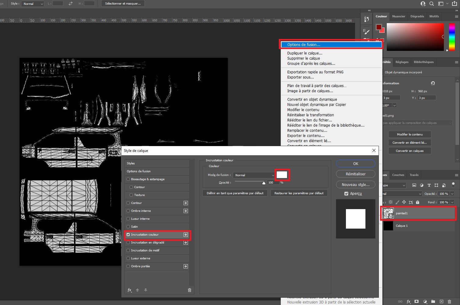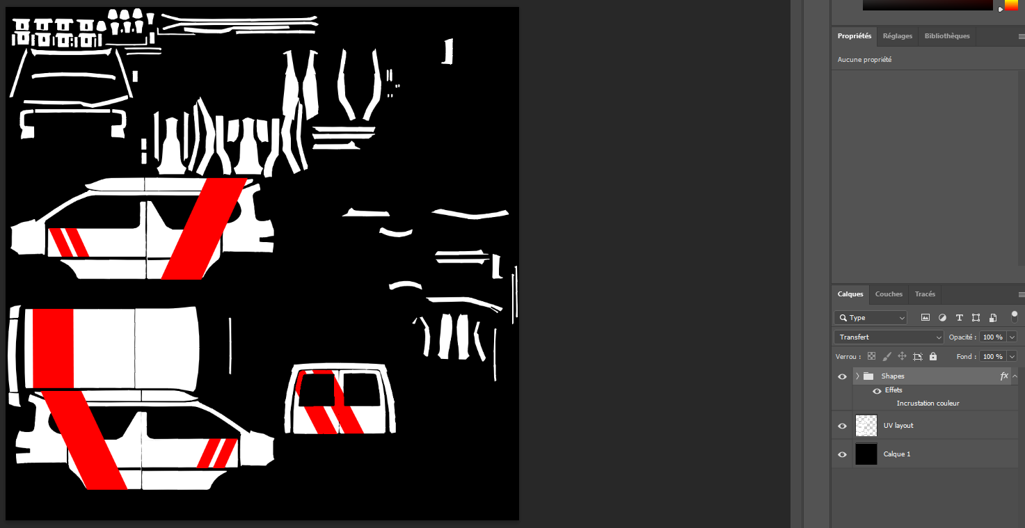 Create a new style on the UV layout to fill it with white. Now you have created your mask for the painted areas of the vehicle.