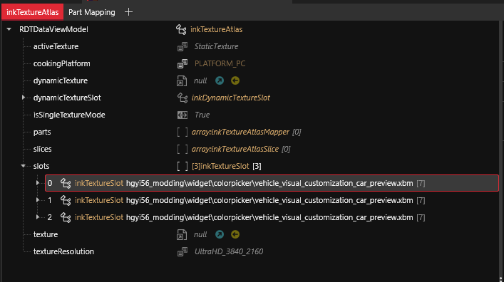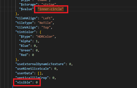 If you test the mod now you may see that details of the outer circle have disappeared. This may occur if you modify the file from WolvenKit. To fix this convert your InkWidget into JSON and [refer to this paragraph](#hide-the-inner-circle-for-secondary-color). For each of the keywords, set the field `visible: 1` for results 3 and 4.