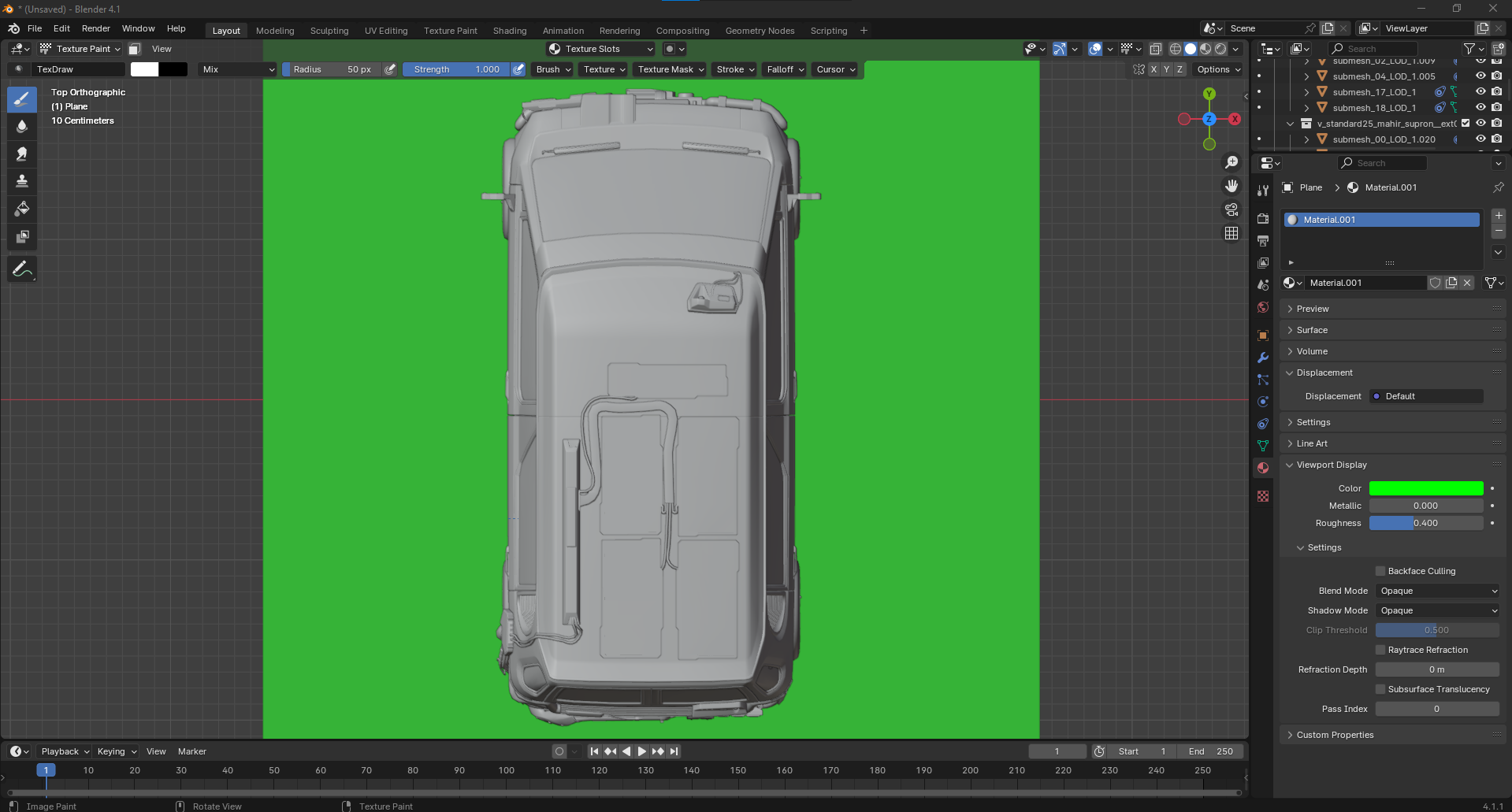 * `CarColorPrintLightsFront1` and 2 are the headlights