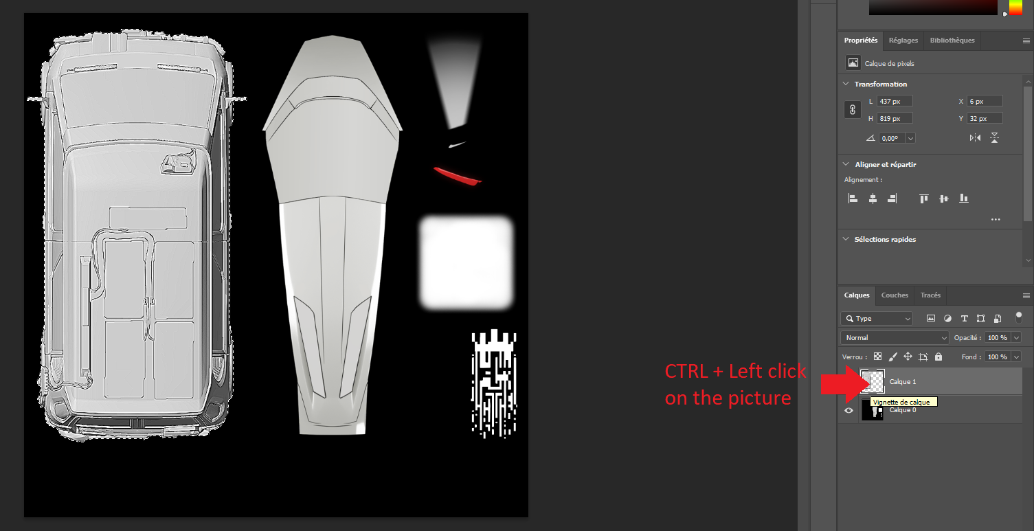 Go into the Alpha channel and paste using CTRL + V. Your pasted element shall be at the same location as the one in the RGB channel. Now you can click anywhere to validate. Go back into the layers tab and delete the one you have just created.