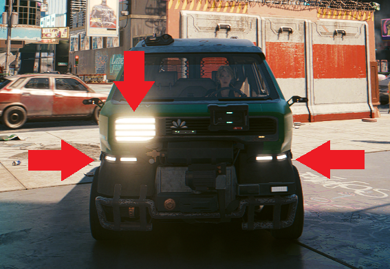 First we want to know where is the element into the game when headlights are turned on. For the Mahir Supron there are several light elements the create.
