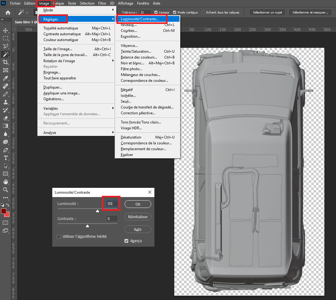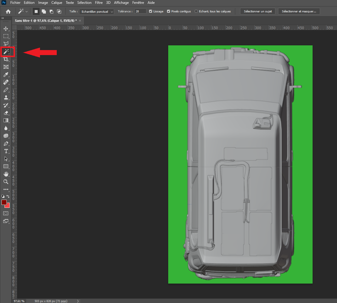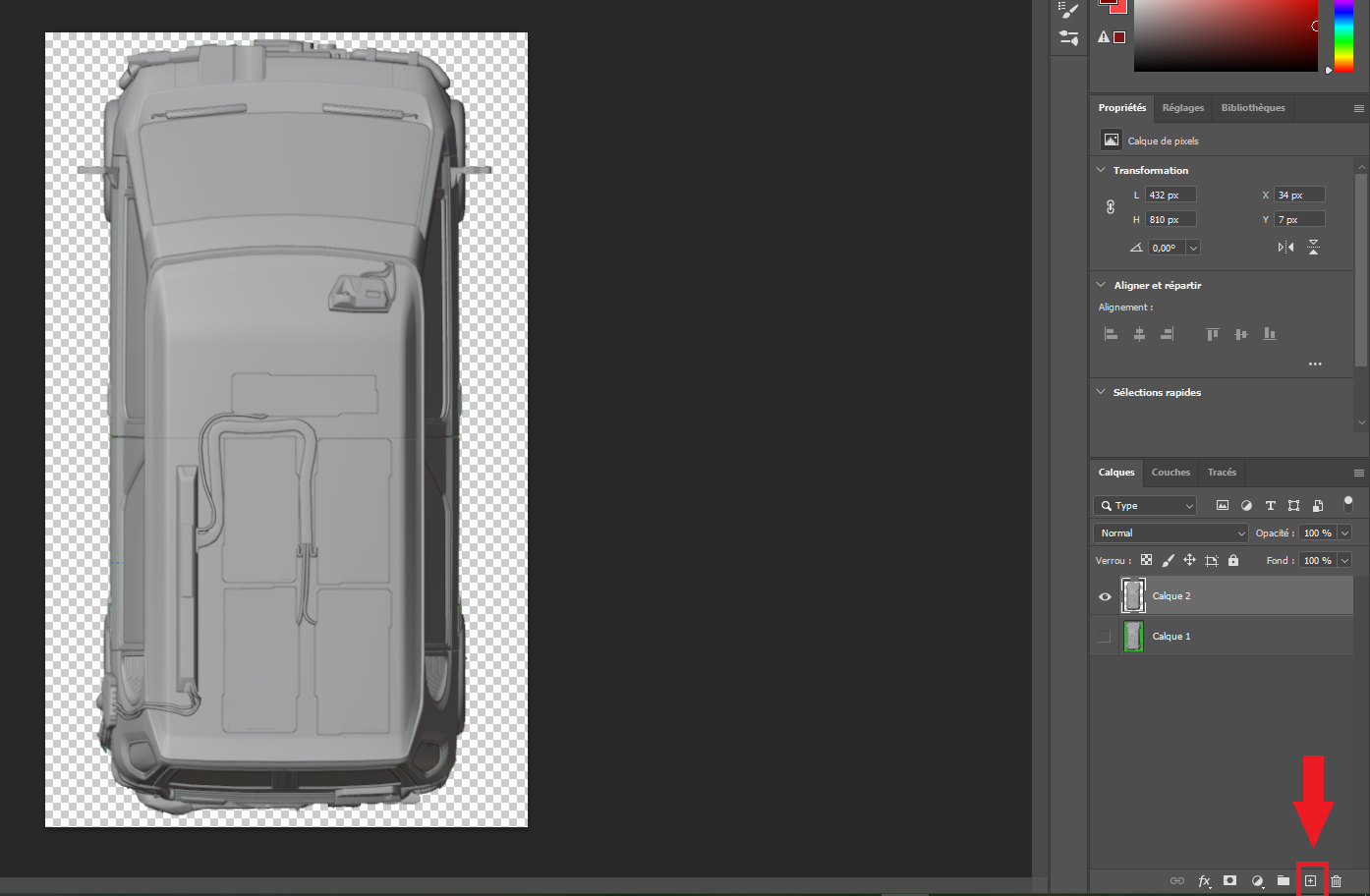 Now we have a new headlight component in a dedicated layer, let's move it at the position of the existing one and replace it for the RGB channel like we did for the previous part.
