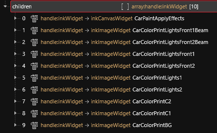 For this step we can edit the widget directly in WolvenKit. Open the file and go into this element hierarchy `libraryItems > package > rootWidget > children > container > children > CenterGroup > children > Car > children`.