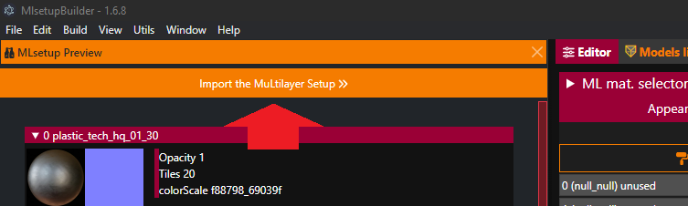 Then right-click on the coated.mlsetup.json file and choose Open in MlsetupBuilder. Import the layers into the editor by clicking on the orange button.