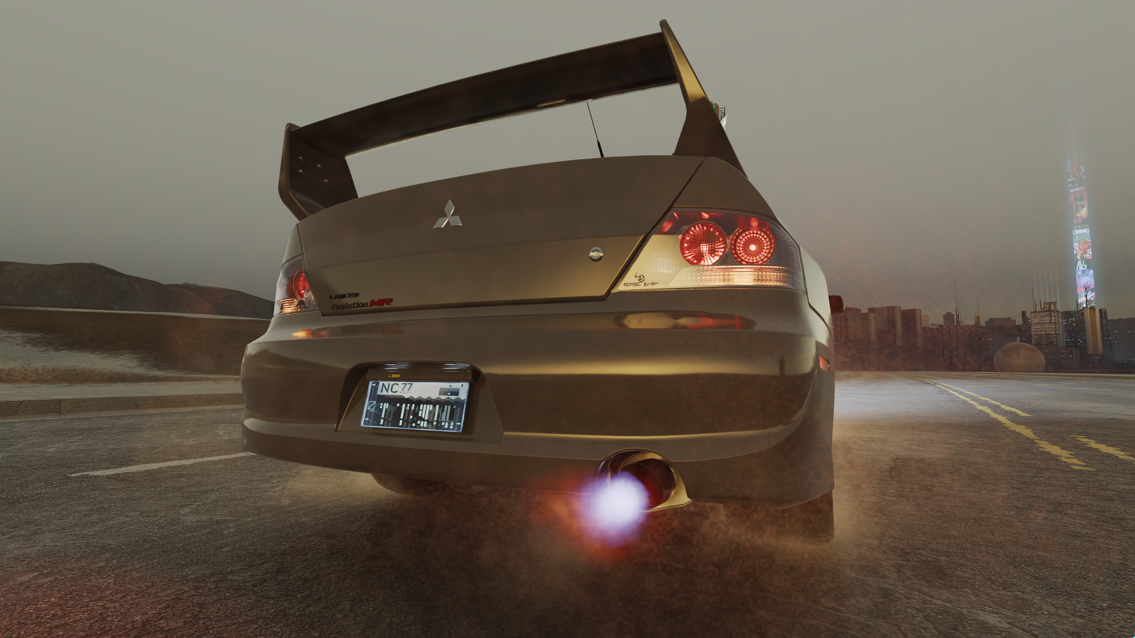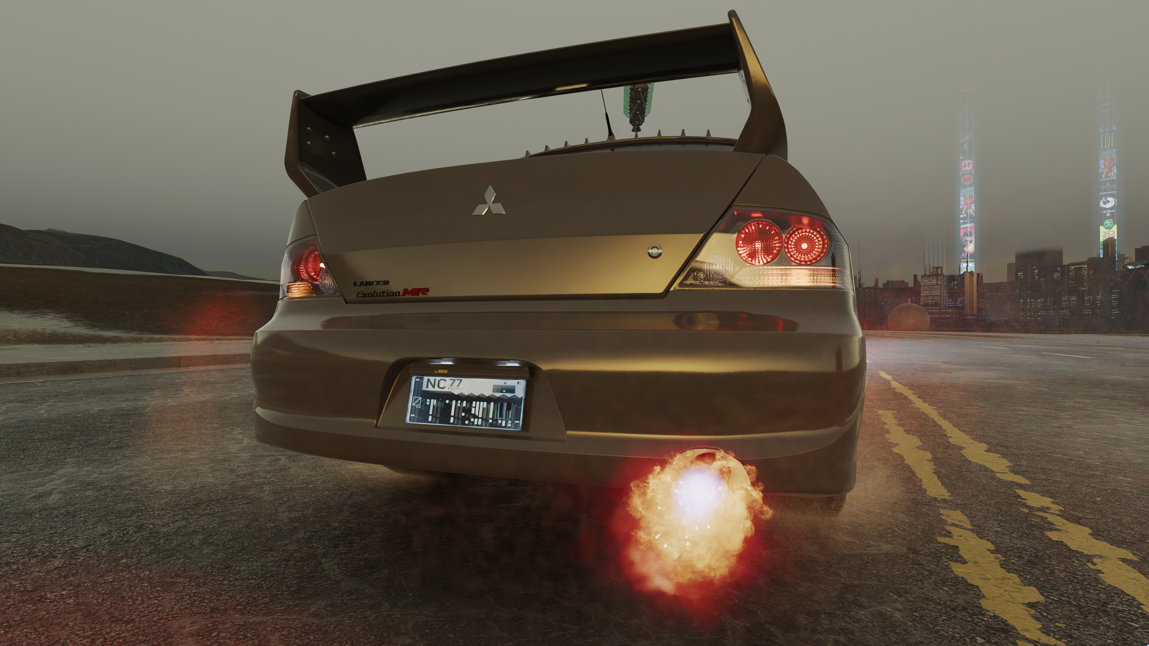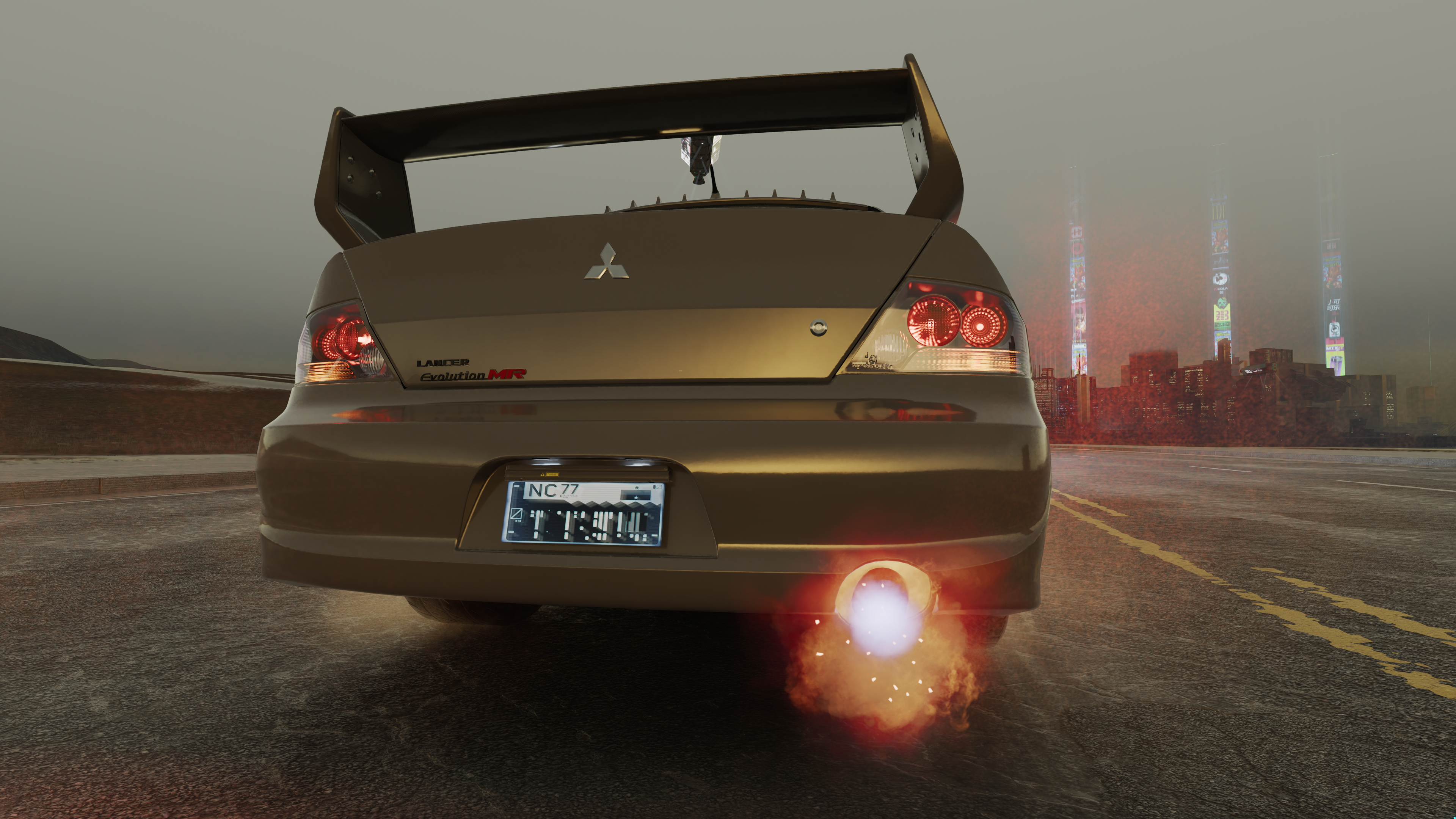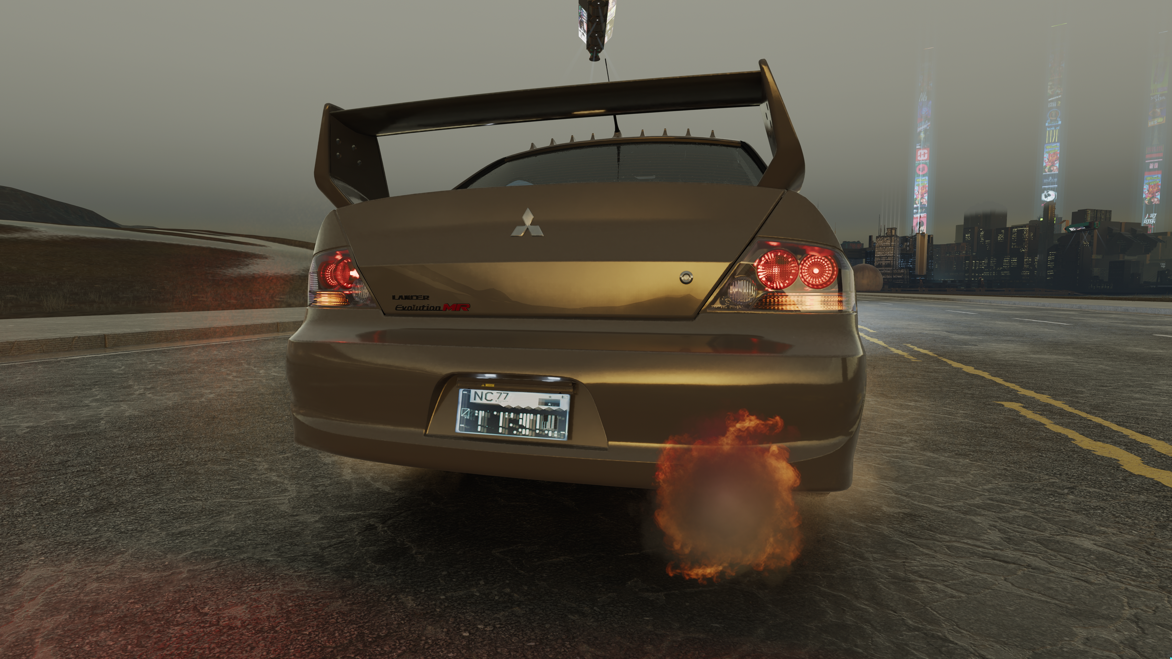 The game features different exhaust backfire effects. This article documents the look of each for easy reference. To change the backfire effect, open the root `.ent` of your vehicle and navigate to `components > "cars_sport_fx" > effectDescs > "exhaust_gear" > compiledEffectInfo > effect`. Note that the names in quotes might be different for each car. The one named `cars_sport_fx` is always an `entEffectSpawnerComponent`, so that might give you an idea on where to start. The `.effect` files used there can be found under `base\fx\vehicles\_exhaust\`.