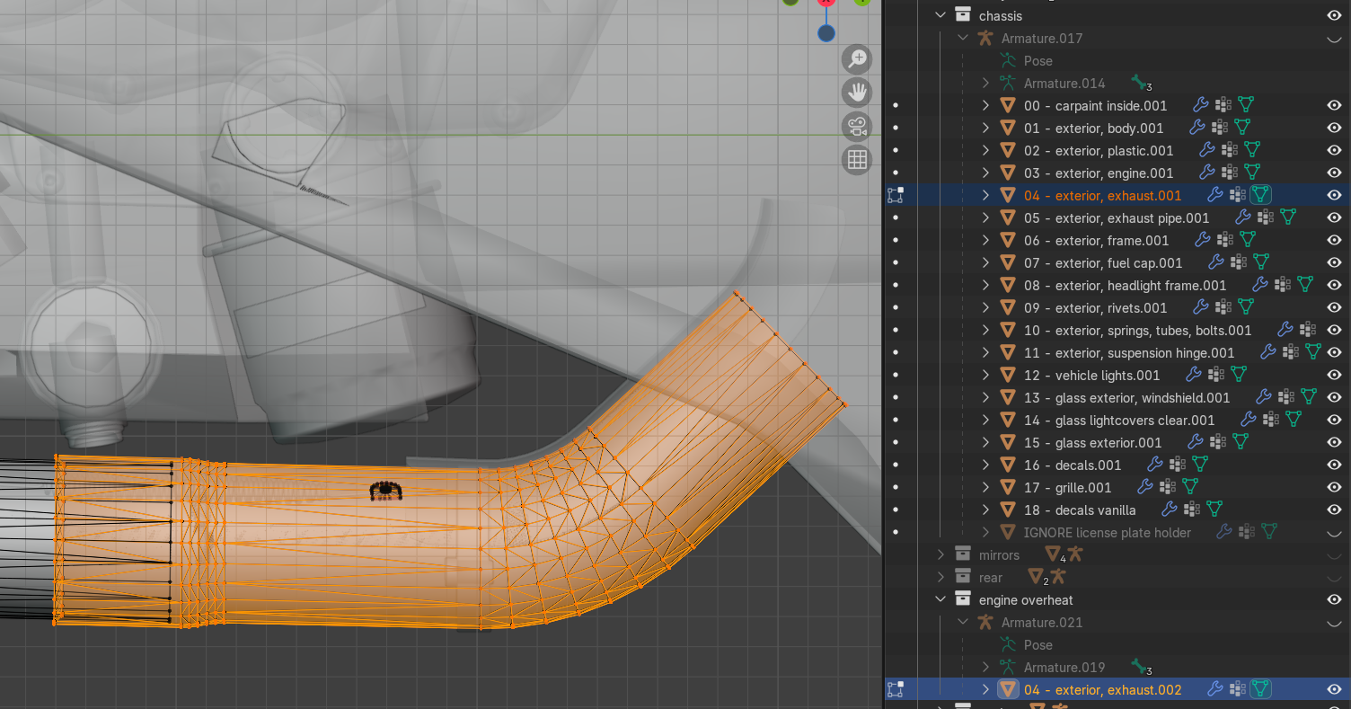 * In Blender while in Object Mode, select the Object which contains the exhaust pipe of your vehicle.