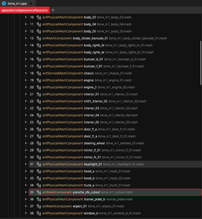 What distinguishes the interior and exterior of the vehicle is the "\_cutout" mesh