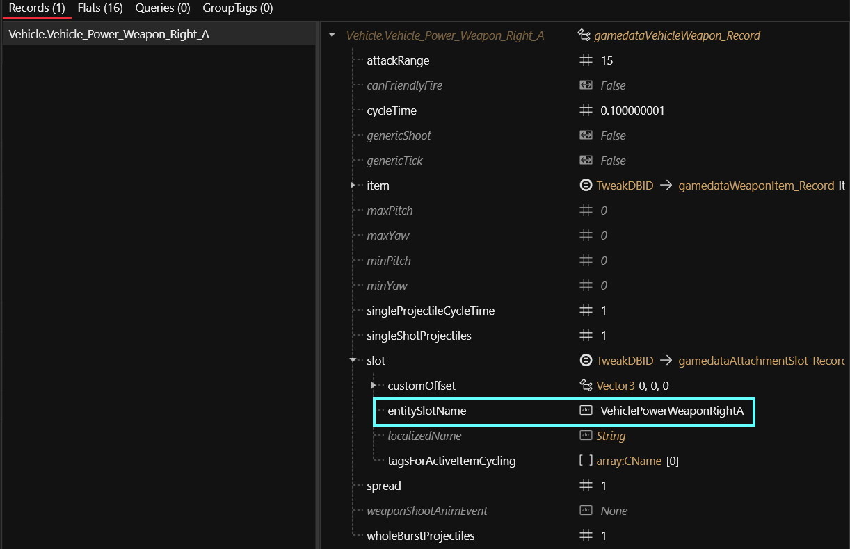 <figure><img src="https://1427525421-files.gitbook.io/~/files/v0/b/gitbook-x-prod.appspot.com/o/spaces%2F4gzcGtLrr90pVjAWVdTc%2Fuploads%2Fgit-blob-ed1dc5de920c3d8a38b36f4f3fe748c358cc75ab%2Fweapons_vehicles_tweakrecord_slot.png?alt=media" alt=""><figcaption></figcaption></figure>