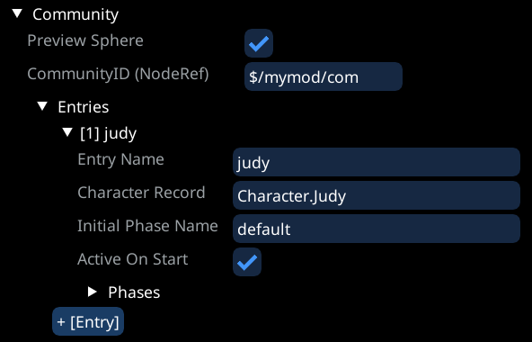 * Let's start by making our community spawn a NPC, do this by adding a new entry under the `Entries` header