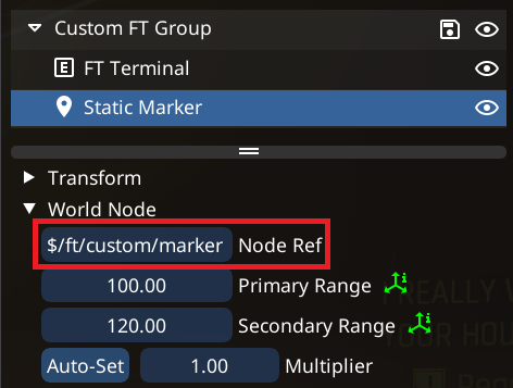 * Set `markerRef`to the NodeRef of the marker (`$/ft/custom/marker`)