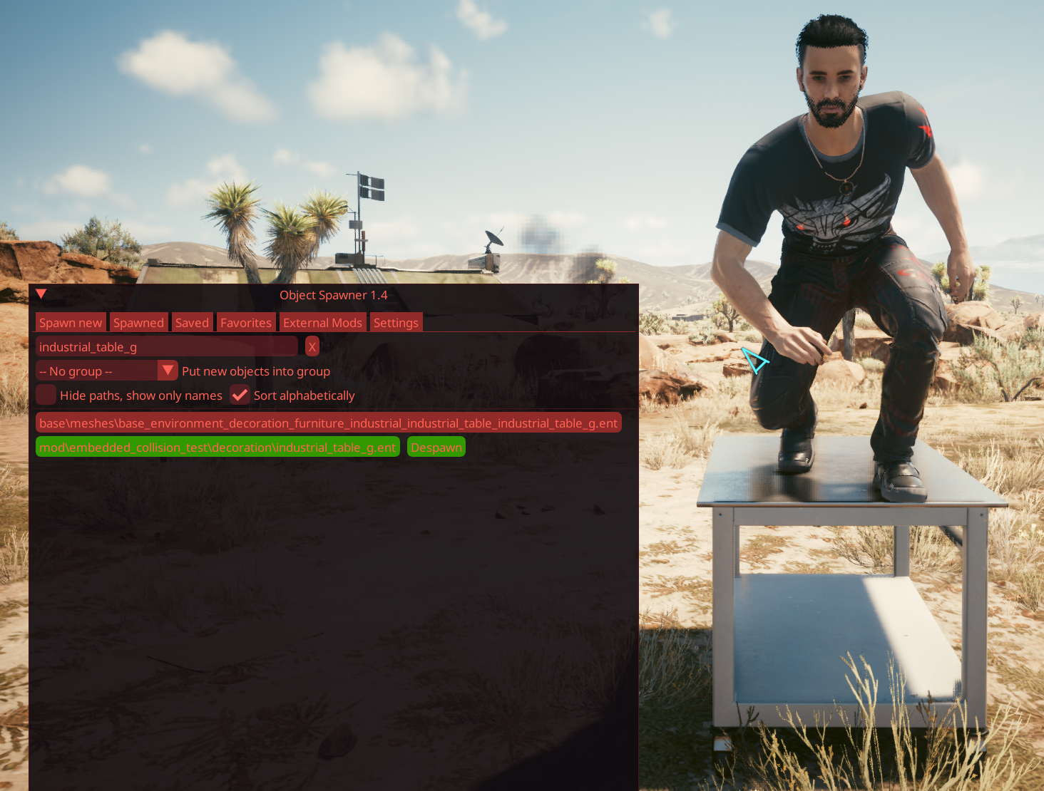 * [**Object Spawner 1.5**](https://www.nexusmods.com/cyberpunk2077/mods/2833) *(screenshots say 1.4, but it's the mod title that wasn't updated in 1.5* :smile:*)*