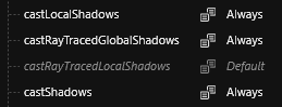 * **Optional***:* depending on the item, you may want to enable (or not) lighting-based shadows. You can do so by setting these 3 properties to `Always`.