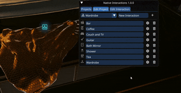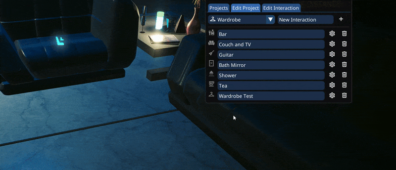 * To edit an interaction, press the "Cog" icon to the right of its name