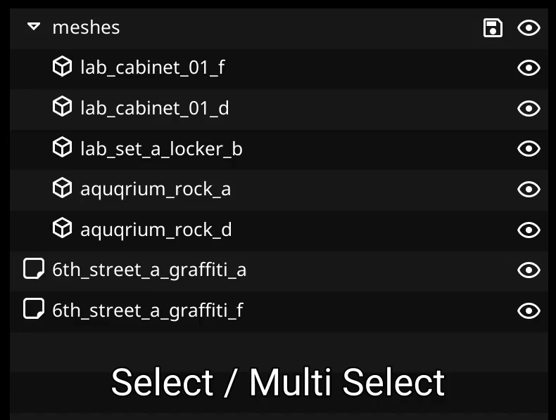 * `CTRL + LMB` : Make a multi-selection