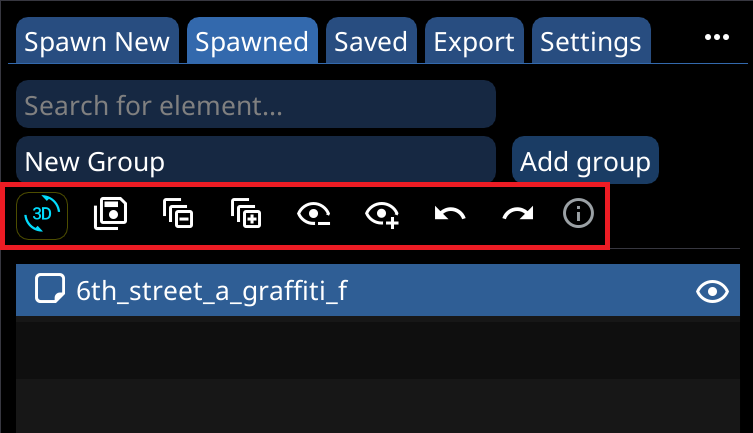 * `CTRL-N` : Set selected group as "[Spawn New](https://wiki.redmodding.org/cyberpunk-2077-modding/modding-guides/world-editing/object-spawner/ui-tabs-explained/tab-spawn-new)" target group