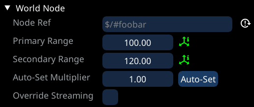 * Additionally, you can activate the `Override Streaming` option, which will let you define a different position from which the streaming distances will be measured from (Instead of using the node position)