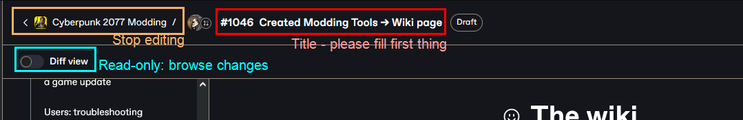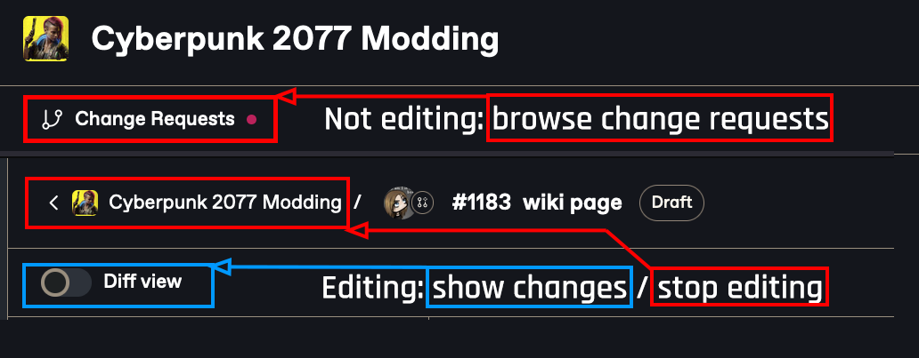 You can't edit without a **change request** (which is a snapshot of the wiki as-it-is that you can fuck around with to your heart's content).