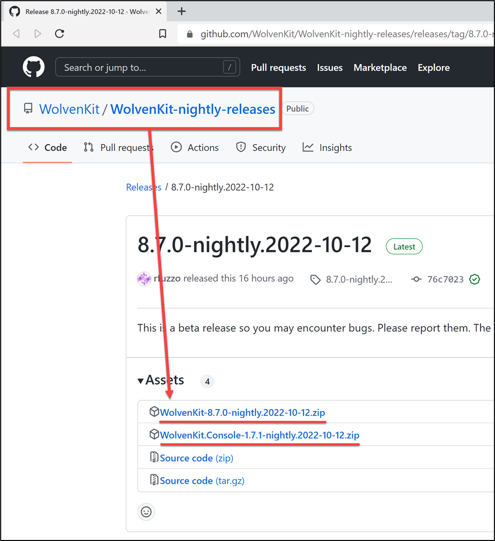 2. Download Wolvenkit-X.X.X.zip from github ([stable](https://github.com/WolvenKit/Wolvenkit/releases) | [nightly](https://github.com/WolvenKit/WolvenKit-nightly-releases/releases/))