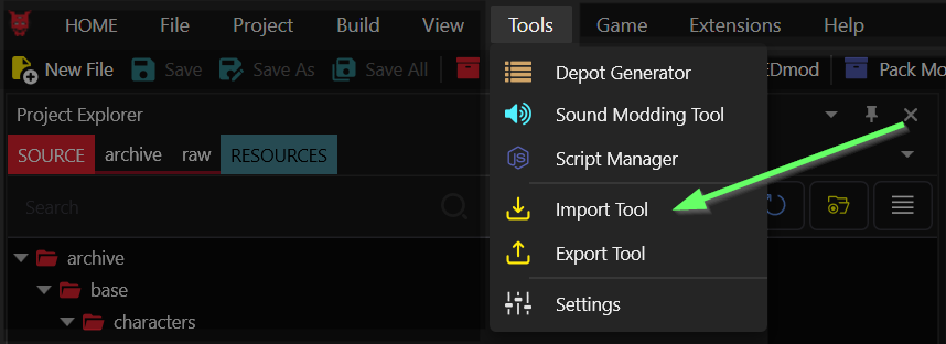 To edit a REDengine file, it first needs to be converted to a more accessible format. This is where the Import/Export tools come in.