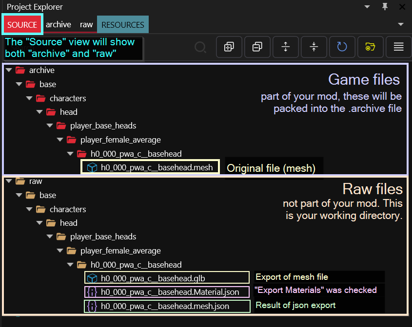 You can browse the file structure via Wolvenkit's **Project Explorer**. Here's how it looks: