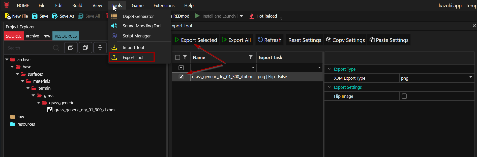 2. [Export](#exporting-a-texture-from-wolvenkit) the xbm file: this adds a png file with the same name to your project's raw folder.
